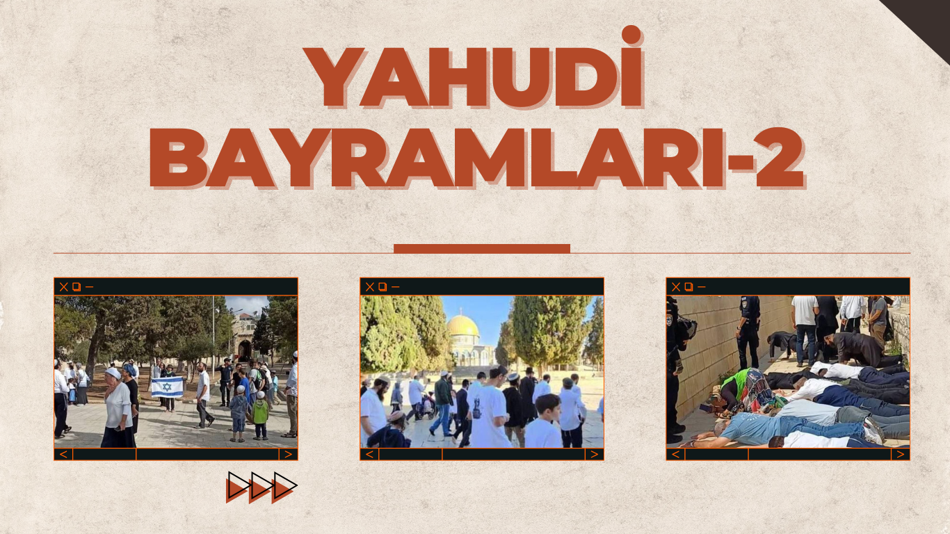 Yahudi inancındaki bayramları incelediğimizde “Mabed” vurgusunun on plana çıktığını görüyoruz. Bununla birlikte Yahudi litaratüründe “Siyon” olarak bilinen kadim Kudüs şehrini, kendileri için dünyaya egemen olma politikasının başkenti haline getirdikleri bu şehirde yıkımları, işgalleri, Kudüs halkına yönelik cani politikaları her gün devam etmektedir. Kendi bayramlarında tüm ritüellerini rahatlıkla hatta polis koruması eşliğinde gerçekleşirtirirken Filistinlilerin kendi inançlarının gereğini yerien getirmelerine engel olmaktalar. Mübarek Mescid-i Aksa’ya günde en az yüz kere baskın düzenleyen işgalciler, mübarek mescitte Müslümanların namaz kılmasına engel olmakta, elli yaş altı Müslümanların mübarek mescide girmesini yasaklamakta ve özellikle Müslümanların özel gün ve gecelerini kollayıp bu zaman dilimlerinde Müslümanları kışkırtarak onları kendi inançlarını yerine getirme hürriyetinden alıkoymaktadır. Bayramları bu tür işgal politikalarına kılıf eden işgalciler, tüm bu yaptıklarını ibadet saymaktadır.